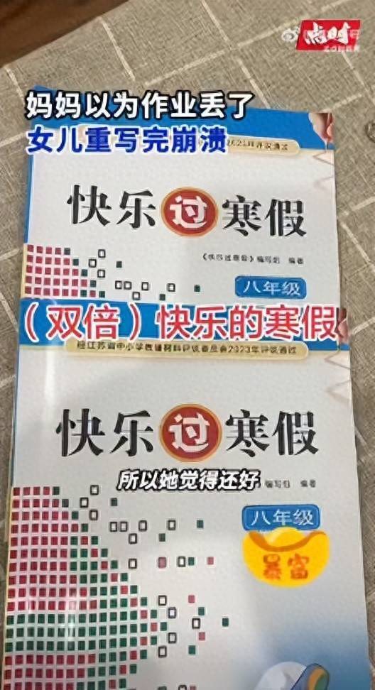江苏泰州一女子误觉得卖了男儿写好的寒假功课,网购新的后男儿快速重写,第二天发现压根没丢